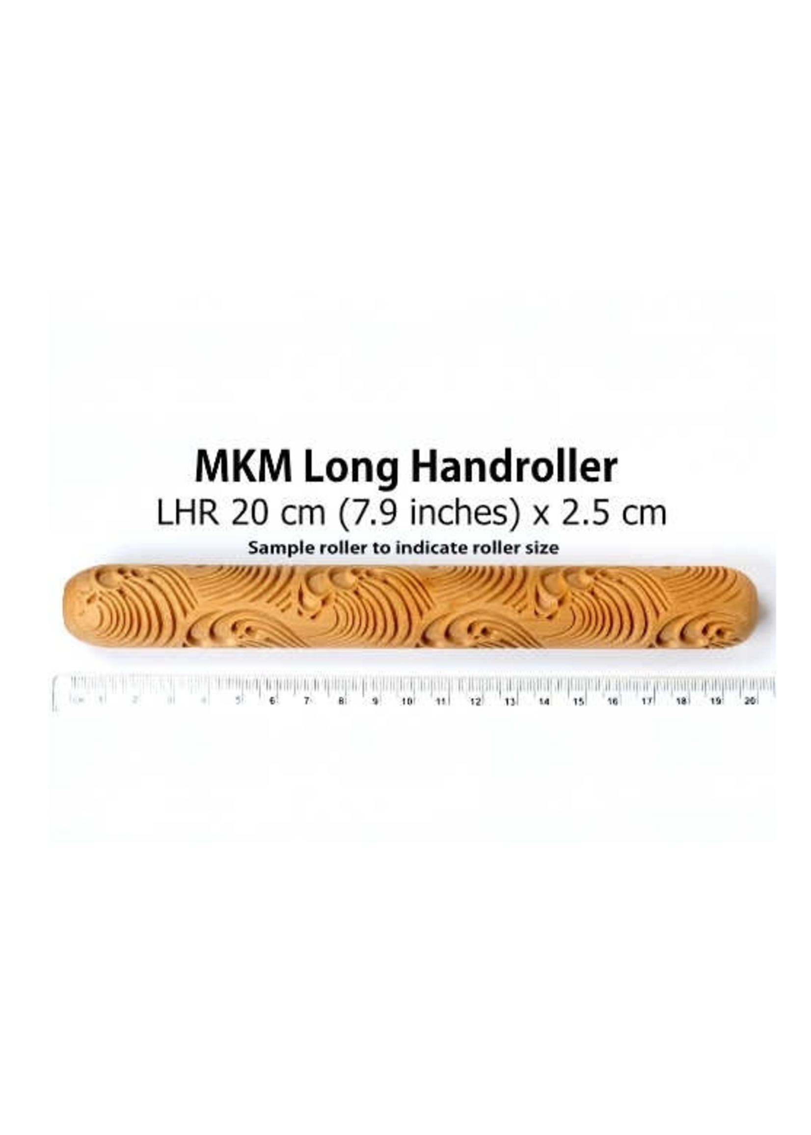 LHR Hand Rollers are 7.9 inches (20 cm) long and 1 inch (2.5 cm) in diameter. Simply roll the LHR roller with your hand across the clay to create a beautiful pattern.